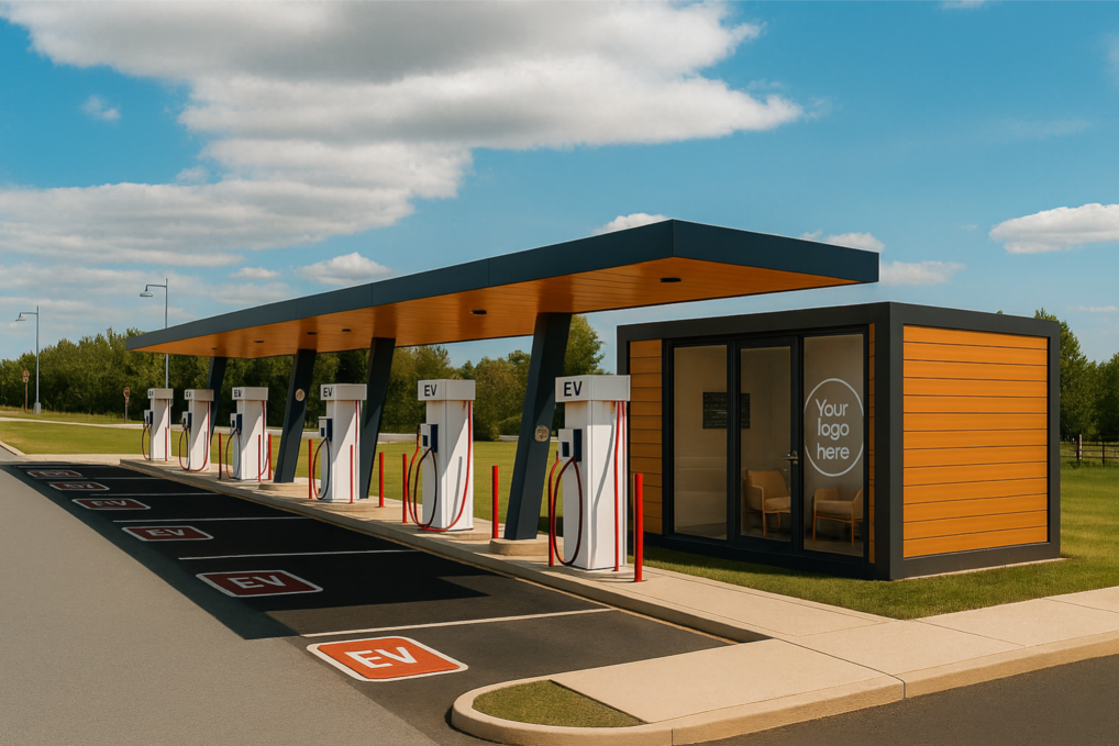Configurable for multiple uses—from EV driver lounges to vending or service hubs—with customizable interiors and branding.